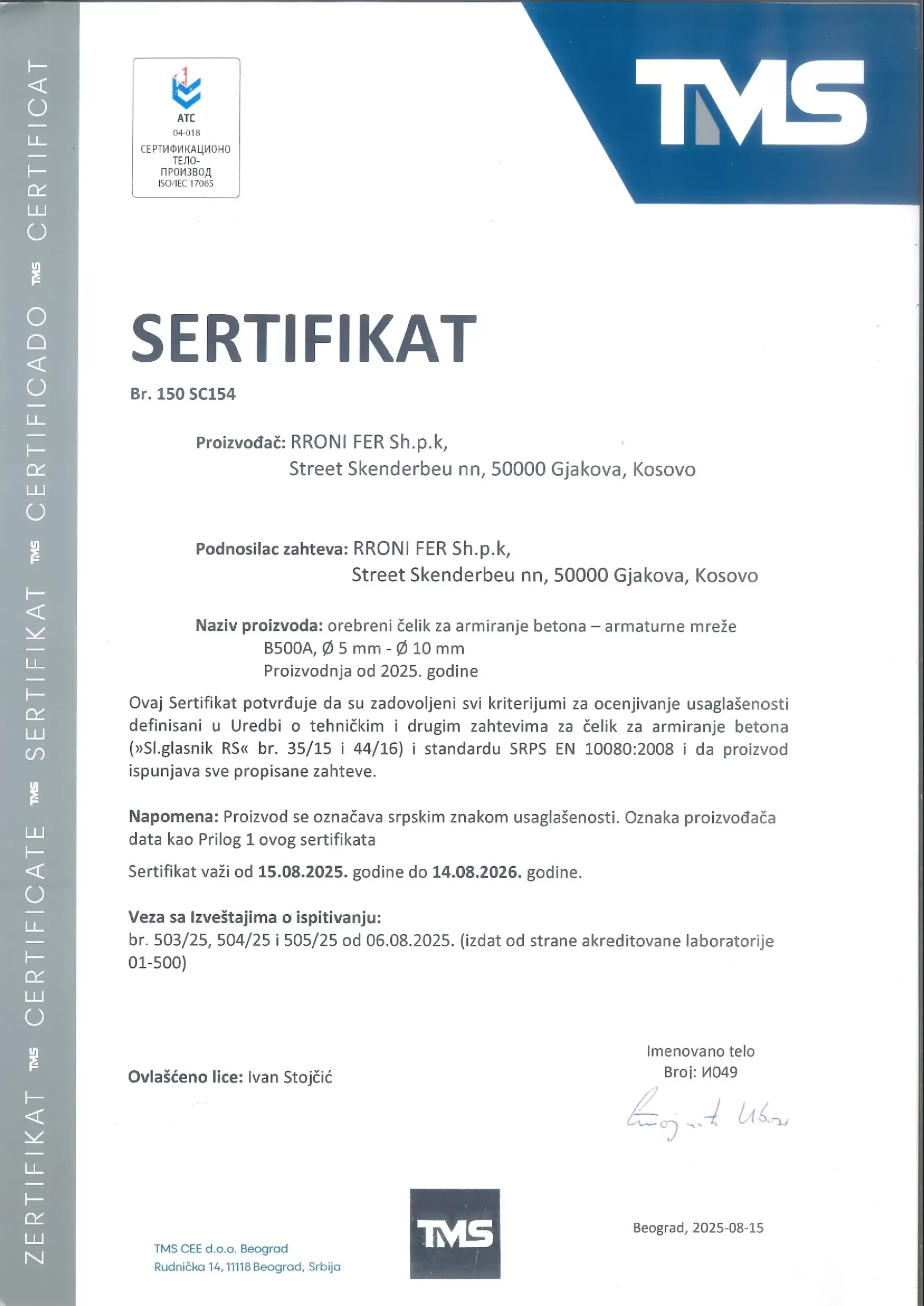 The reinforcing mesh is fixed in concrete to provide the necessary tensile strength to support large structural loads. However, unlike reinforcing bars, the mesh can be used to shape structures whilst also supporting them. Rronifer produces a wide range of wire mesh B500A according to DIN 488.Meshes are manufactured from cold-drawn wire rod.The diameters of the wires are from Ø5 to Ø10.Other sizes also can be produced based on client request.
